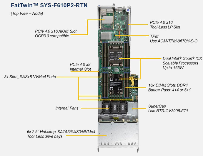 Buy the Supermicro FatTwin SuperServer SYS-F610P2-RTN | SYS-F610P2-RTN as a barebone for R283,065.05 or configure your SuperServer below.