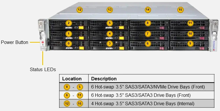 Configure the Supermicro Storage SuperServer 621E-ACR16H | SSG-621E-ACR16H with 3.5" drives. These drives are more cost-effective, offer a larger storage capacity and offer more flexibility.