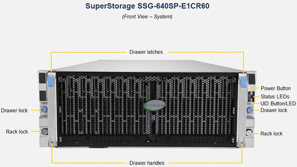 The Supermicro Storage SuperServer SSG-640SP-E1CR60 | SSG-640SP-E1CR60 features hot-swap hard drives, giving you more flexibility and allowing you to remove drives without having to shut down the system.