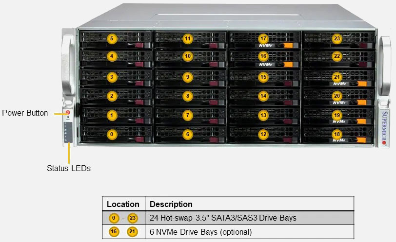 Configure the Supermicro Storage SuperServer 641E-E1CR36L | SSG-641E-E1CR36L with 3.5" drives. These drives are more cost-effective, offer a larger storage capacity and offer more flexibility.