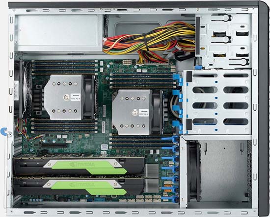 The Supermicro SuperWorkstation 7039A-i | SuperWorkstation can be configured with reliable fixed drives which are a cheaper alternative to hot-swappable drives, lowering the overall cost of the system.