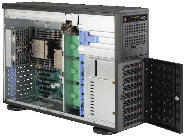 The Supermicro SuperWorkstation 7047R-3RF4+ | SYS-7047R-3RF4+ features hot-swap hard drives, giving you more flexibility and allowing you to remove drives without having to shut down the system.