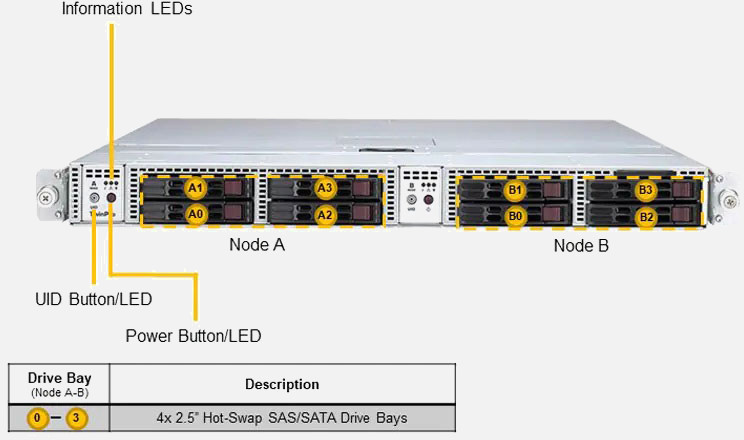 Ideal for High Performance Computing, Big Data / Big Science and Hyper-Converged Infrastructure. Dual Node 1U Form Factor. Redundant 1000W Power Supply, 4x 2.5" hot-swap SATA/SAS drive bays (Per Node).