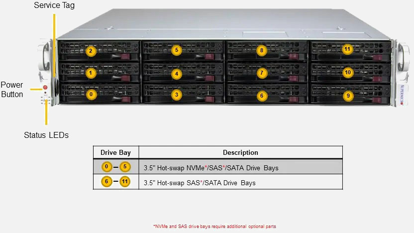 Ideal for Virtualisation, Edge/Cloud Computing Services server. Supports up to 2x Dual slot Graphics Card, 800W Redundant power supply, 6x 3.5/2.5" SATA/SAS & 6x 3.5"/2.5" NVMe/SATA/SAS hot swappable drive bays.