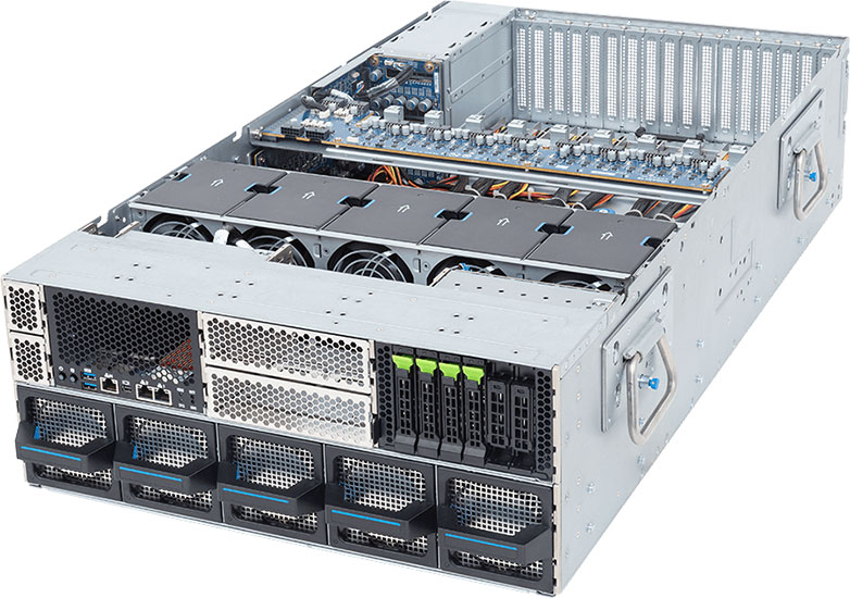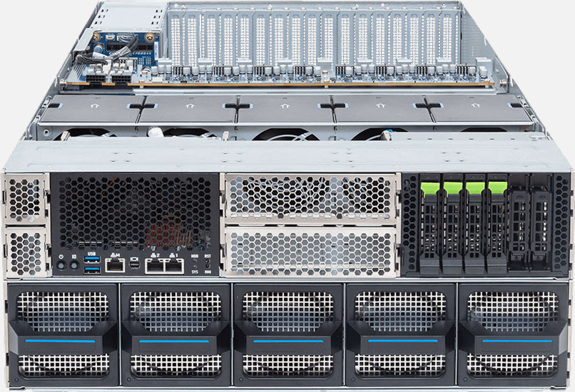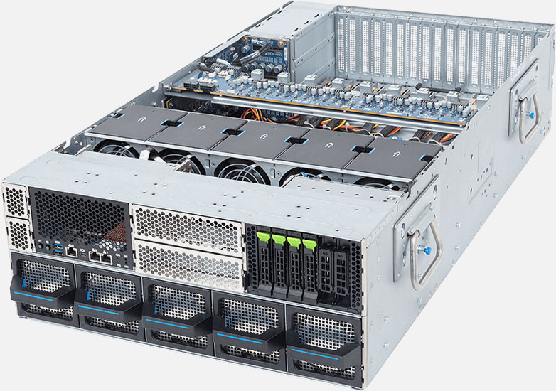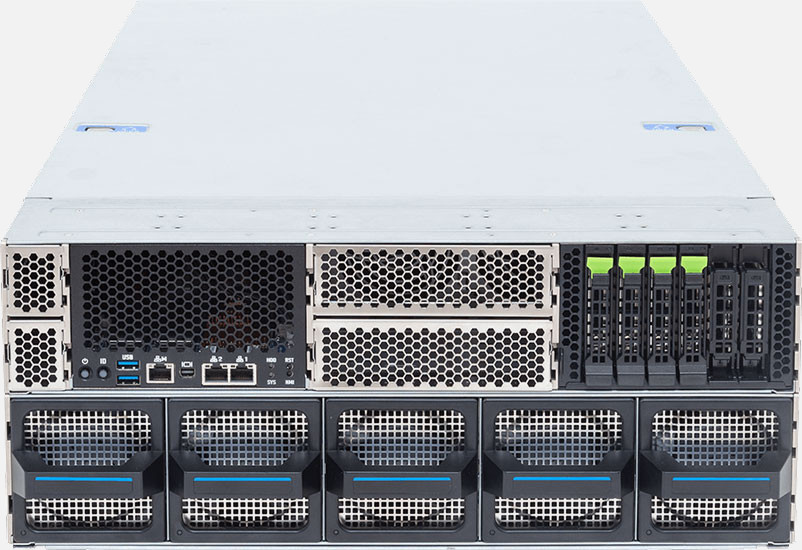 Dual Intel Xeon 6 Series processors, Supports 8x Dual slot Gen5 GPUs, dual 10Gb/s LAN ports, redundant power supply, 12x 2.5" NVMe/SATA/SAS & 4x SATA/SAS hot-swappable bays.