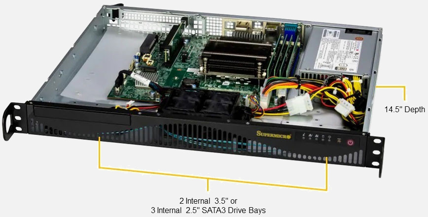 Very Short Depth 1U Server, Intel Xeon E 2400 Series, Single Processor, 2x Internal Hard Drives