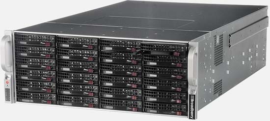 The CyberServe XE5-424S is a high density 4U rackmount server with 24x 3.5" hard drives.