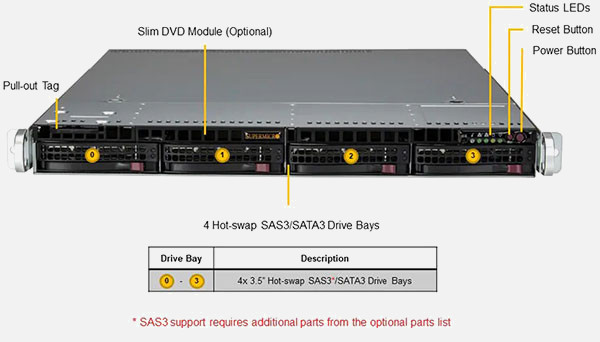 This system can be configured with SATA drives for cost-effective 12gb/s storage.