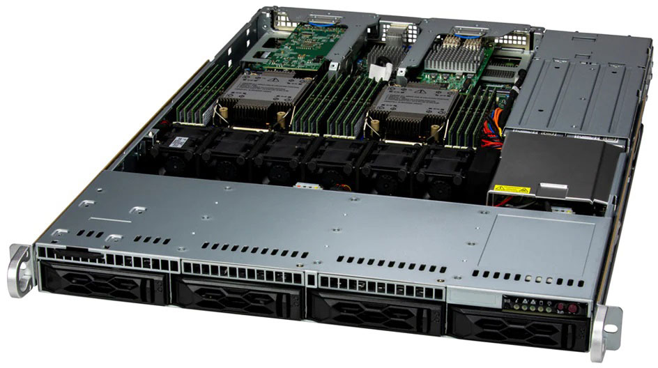 Dual 5th/4th Gen Intel Xeon Scalable processor, dual 1Gb/s LAN ports, redundant power supply, 4x 3.5" NVMe/SATA hot-swappable bays